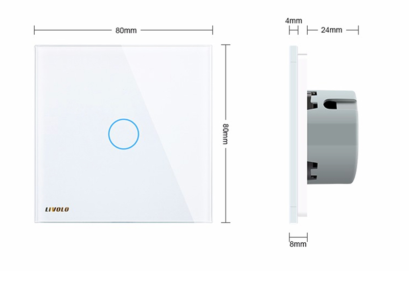 Interruptor de tacto con placa de vidrio templado en color blanco. Control táctil sensible (similar a una pantalla de Smartphone). Para encender y apagar la luz basta con tocar suavemente en el círculo. Su cristal de alta calidad es resistente al desgaste, no se ralla, no se decolora. incorpora un LED azul/rojo indicador de apagado/encendido. Soporta de 1W hasta 1000W de carga, funciona con todo tipo de luces (LED, halógenos, bajo consumo, fluorescencia, incandescencia). Se instala con los mismos dos cables que un interruptor convencional (no necesita cableado adicional).
