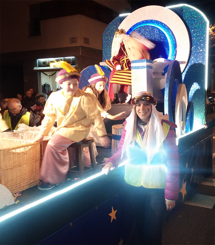 Nuestros amigos de la Comisión de fiestas del barrio barcelonés del Poblenou han adornado este año la carroza de Sus Majestades los Reyes de Oriente con nuestros leds efecto neón.