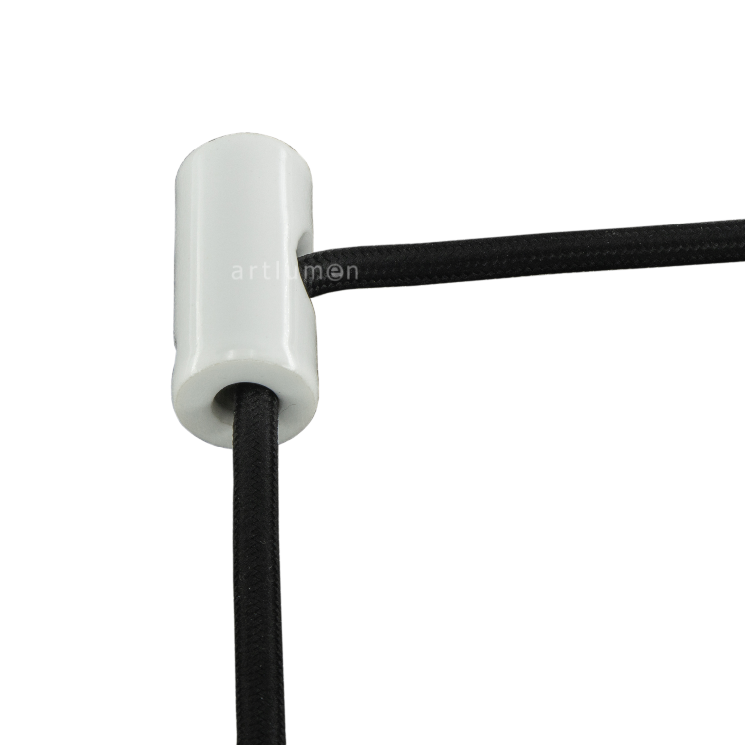 Ideal para crear una lámpara suspendida donde el cable entra por su orificio lateral y sale hacia abajo por su orificio posterior.