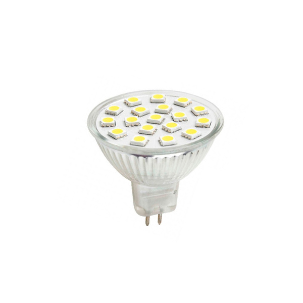 Funciona a 12V, en corriente continua o alterna (AC/DC), con el mismo transformador de la halógena. Se conecta en el mismo portalámparas bipin G-4 (MR11).