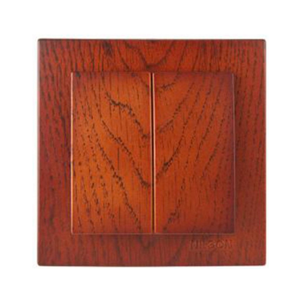Mecanismo de doble tecla, doble conmutador, en color madera acabado nogal. instalación empotrada.