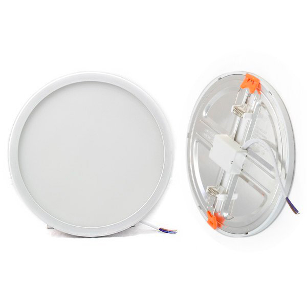 Downlight LED empotrable con muelles ajustables para poder adaptarse a diferentes tamaños de enclavamiento (se adapta a un taladro de mínimo 5cm a un máximo de 16cm). Redondo con marco de color blanco.