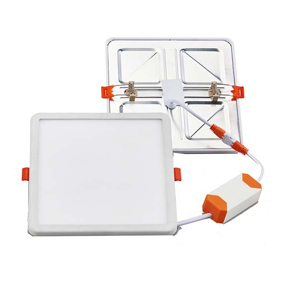 Downlight LED cuadrado empotrable. Con muelles ajustables para poder adaptarse a diferentes tamaños de enclavamiento (se adapta a un taladro de mínimo 5cm a un máximo de 9cm)