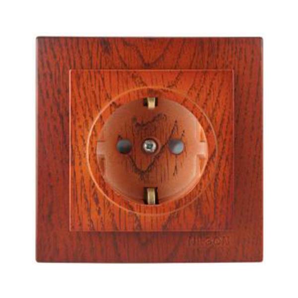 Base de enchufe con toma de tierra de color madera acabado nogal. instalación empotrada.