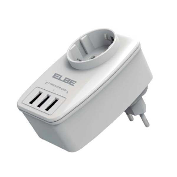 Enchufe cargador USB con una entrada de enchufe con toma de tierra (para no perder el enchufe que ocupa). Cargador de alta velocidad con 3 puertos USB para teléfonos móviles, tablets, reproductores MP3 y MP4, etc.
