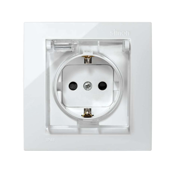Base de enchufe con toma de tierra de color blanco para instalación empotrada. Dispone de una membrana transparente interior que le confiere un grado de estanqueidad IP44. Con tapa transparente abatible. Ideal para baños o cocinas en instalaciones cercanas a las zonas de agua.