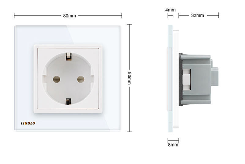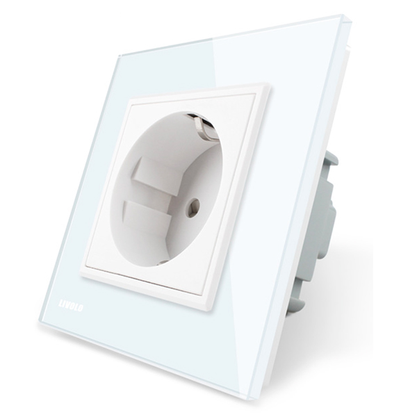 Enchufe con toma de tierra en elegante placa de vidrio de color blanco. Cristal resistente al desgaste (no se ralla, no se decolora).