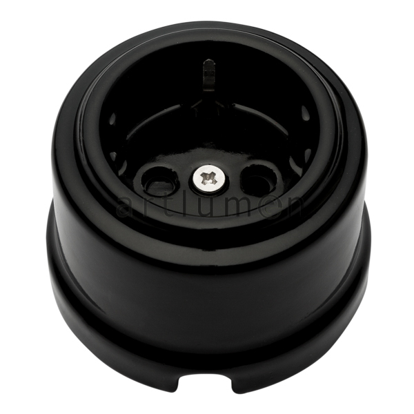 Original diseño, replica de los antiguos enchufes de porcelana pero cumpliendo las actuales normativas de seguridad. Evocan ambientes rústicos. Encajan perfectamente en instalaciones retro. Acepta todo tipo de clavijas (finas y gruesas con T.T.). Instalación en superficie. Fabricado en porcelana de color negro.