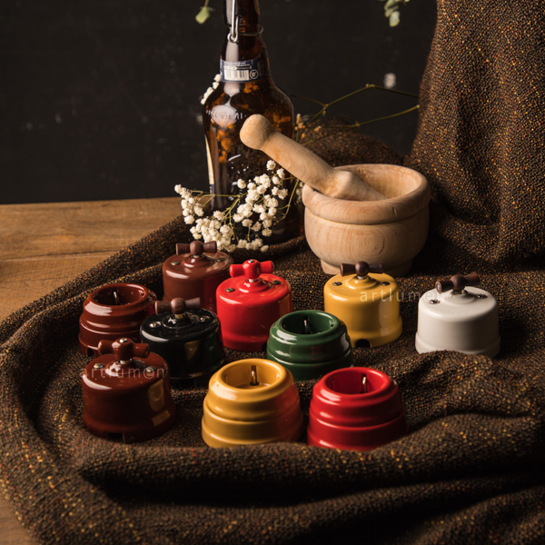 Base de enchufe fabricado en porcelana de color rojo. Ideal tanto para espacios rústicos como decoraciones modernas, combinando con otros elementos de color. Bonita replica de los antiguos enchufes de porcelana, pero cumpliendo las actuales normativas de seguridad. Acepta todo tipo de clavijas (finas y gruesas con T.T.). Instalación en superficie. Incorpora toma de tierra lateral (como los enchufes actuales)