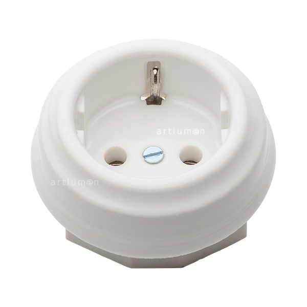 Base de enchufe fabricado en porcelana, replica de los antiguos enchufes “de toda la vida”. Ideales para instalaciones retro, decoraciones vintage, ambientes rústicos, etc.