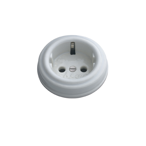 Replica de los antiguos enchufes de porcelana pero cumpliendo las actuales normativas de seguridad. Evocan ambientes rústicos. Encajan perfectamente en instalaciones retro. Acepta todo tipo de clavijas (finas y gruesas con T.T.).