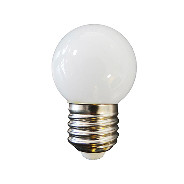 Bombilla LED esférica. Tamaño muy compacto. Esfera de plástico anti-rotura de color blanco con el mismo aspecto que las clásicas bombillas de colores.
