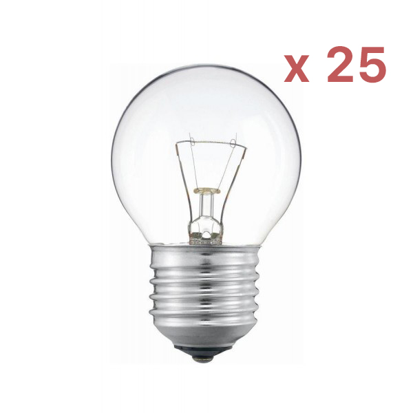 Bombilla incandescente (de filamento). Esférica de 15W con cristal transparente. De rosca estándar (E-27)