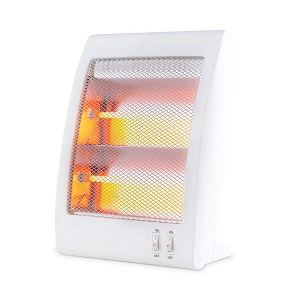 Estufa de cuarzo con dos barras. Dos niveles de potencia. Máximo 1000W. Modelo vertical de superficie, con sistema de seguridad anti-vuelvo. Emisión instantánea de calor. Reflector protegido con rejilla de seguridad. Dos niveles de potencia: 500W y 1000W