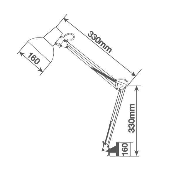 Dimensiones: Brazo 1=330mm Brazo 2=330mm Campana diámetro= 160mm