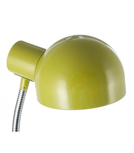 Lámpara de sobremesa fabricada en metal de color verde. De bonitas formas redondeadas. Dispone de un flexo que permite orientar la luz hacia cualquier dirección. Ideal para escritorios y estudios. Cable de conexión con interruptor.