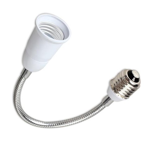 Rosca E-27 con flexo y un portalámparas E-27. Se rosca en el lugar de la bombilla. Permite alejar la bombilla unos 200 mm. de su rosca y orientarla en diferentes direcciones. Muy práctico.