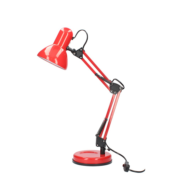 Lámpara de sobremesa tipo flexo articulado. Metálico de color rojo. Con interruptor en el cable de conexión.