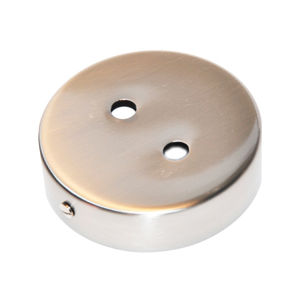 Florón metálico en acabado acero. Pieza para colocar en el techo y cubrir la conexión de la lámpara. Con dos orificios para dos salidas de cable.