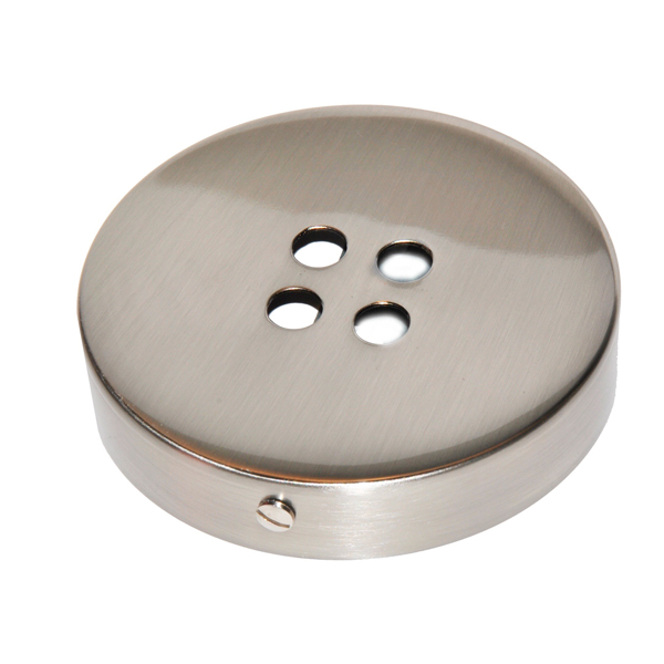 Florón metálico en acabado acero. Pieza para colocar en el techo y cubrir la conexión de la lámpara. Con cuatro orificios para cuatro salidas de cable.