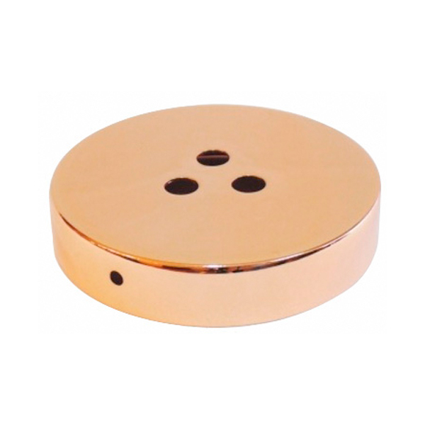 Florón metálico en acabado cobre. Pieza para colocar en el techo y cubrir la conexión de la lámpara. Con tres orificios para tres salidas de cable.