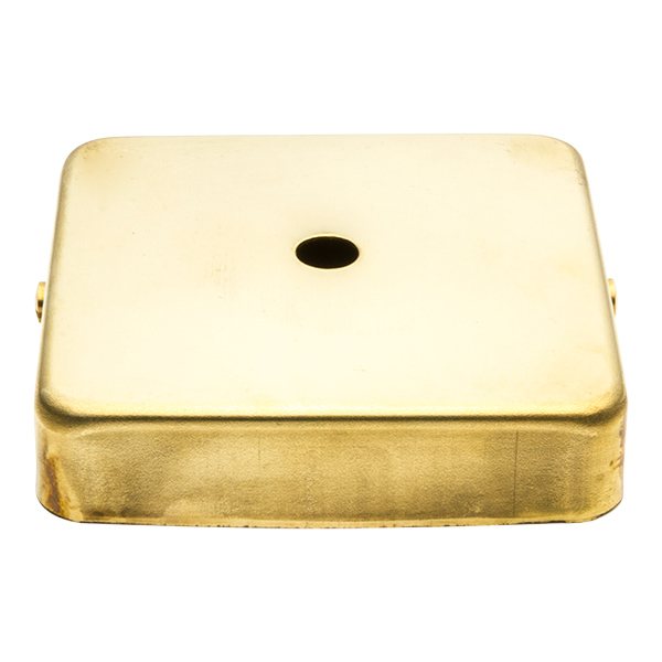 Florón metálico plano fabricado en latón, para colocar en el techo y cubrir la conexión de la lámpara. Su forma cuadrada lo hace un tanto especial, diferenciándose del clásico florón redondo.