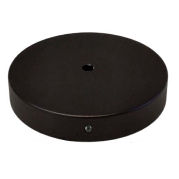 Soporte de metal en color negro que sirve tanto de florón de lámparas para techo o salida de cables y base para lámparas de pared. Incluye kit para montar (travesera metálica para fijar a pared o techo y tornillería)