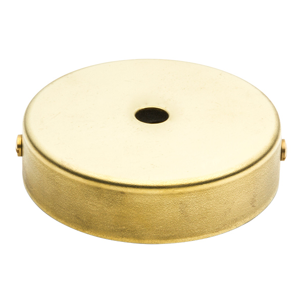 Florón metálico fabricado en latón. Pieza para colocar en el techo y cubrir la conexión de la lámpara. Con un orificio central para salida de cable.