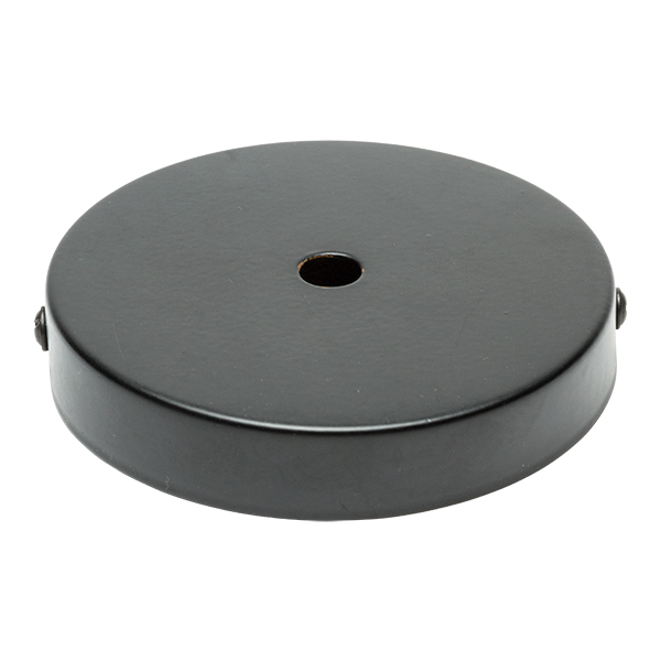 Florón metálico plano de color negro. Pieza para colocar en el techo y cubrir la conexión de la lámpara.