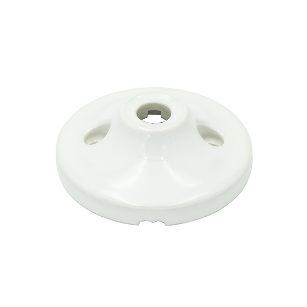 Florón de techo fabricado en porcelana de color blanca. Embellecedor para la salida del cable en lámparas de techo.