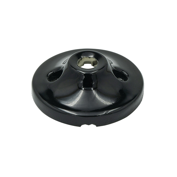 Florón de techo fabricado en porcelana de color negra. Embellecedor para la salida del cable en lámparas de techo.