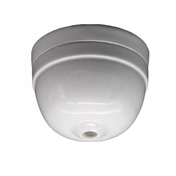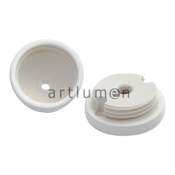 Florón de techo con forma de copa, fabricado en porcelana de color blanca. Embellecedor para la salida del cable en lámparas de techo. Sirve también de caja de conexiones y salida de cables.