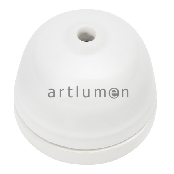 Florón de techo con forma de copa, fabricado en porcelana de color blanca. Embellecedor para la salida del cable en lámparas de techo. Sirve también de caja de conexiones y salida de cables.