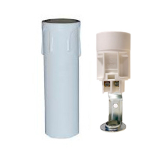 Portalámparas imitación vela para la restauración de lámparas. Funda de plástico simulando una vela de cera con gotas derramadas en color blanco. Incluye casquillo para bombillas de rosca fina (E-14) con soporte metálico de rosca 10/100 (el estándar para lámparas). Pieza muy útil para substituir antiguos casquillos en lámparas antiguas de brazos. En el caso de que no se puedan roscar en la lámpara, disponemos de un accesorio; tapón botella, para fijar a presión y poder roscar el porta velas.