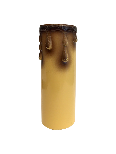 Funda de plástico simulando una vela de cera con gotas derramadas. Para colocar encima del portalámparas antiguo. De color ocre con las gotas en marrón difuminado. Ideal para la restauración de lámparas antiguas.
