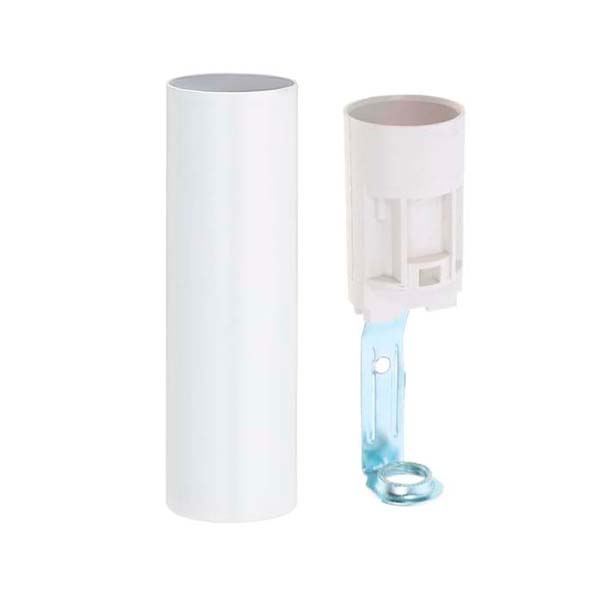 Portalámparas imitación vela para la restauración de lámparas. Funda de plástico liso color blanco. Incluye casquillo para bombillas de rosca fina (E-14) con soporte de rosca 10/100 (el estándar para lámparas).