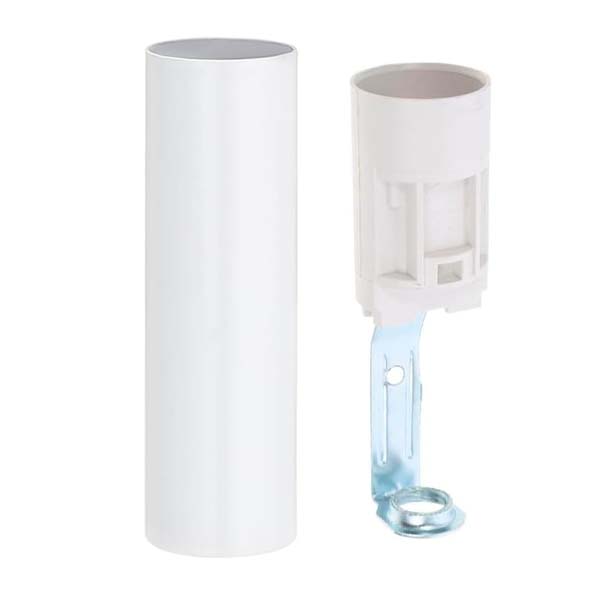 Portalámparas imitación vela para la restauración de lámparas. Funda de plástico liso de color blanco. Incluye casquillo para bombillas de rosca fina (E-14) con soporte de rosca 10/100 (el estándar para lámparas).