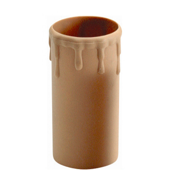 Funda de plástico simulando una vela de cera con gotas derramadas en color patinado. Pieza para cubrir casquillos lisos de rosca estándar (E-27) con un diámetro máximo de 40mm. Ideal para la restauración de lámparas antiguas.