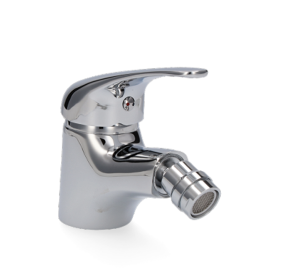 Grifo monomando para bidet muy robusto con un diseño moderno. Difusor orientable para dirigir el chorro. Cuerpo de latón con mango de zinc.