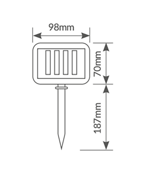 Panel solar= 98x70mm, Estaca=187mm longitud