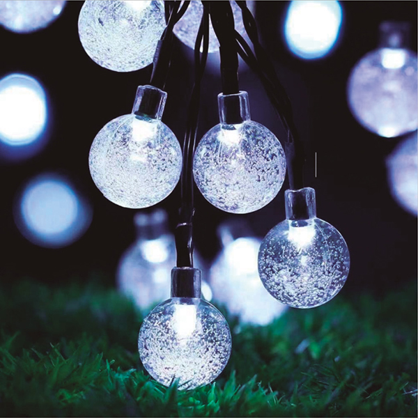 Guirnalda decorativa de 5m de longitud con 20 bolas de luz blanca. Alimentada con placa solar.