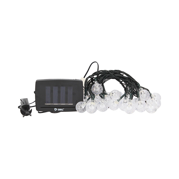 Guirnalda decorativa de 5m de longitud con 20 bolas de luz blanca. Alimentada con placa solar.
