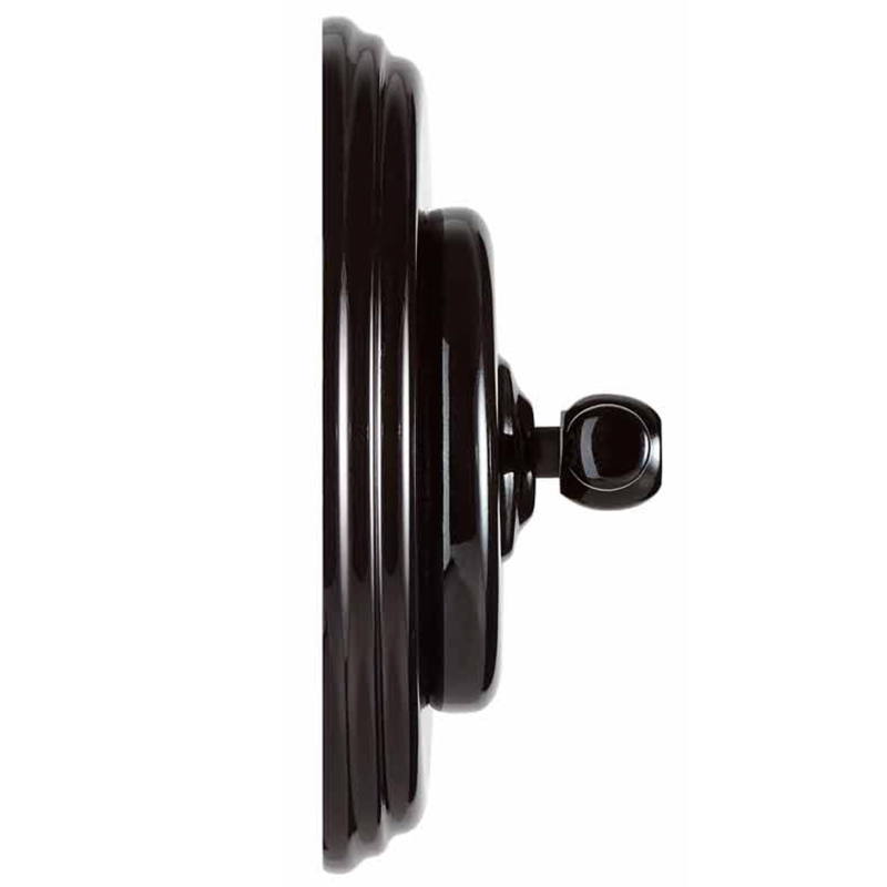 Interruptor conmutado fabricado en porcelana negra con marco también de porcelana para instalación empotrada.