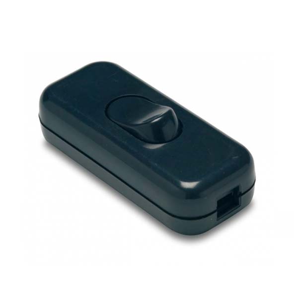 Interruptor de paso para intercalar en el cable de manera muy sencilla. Se corta el cable y se conectan los hilos en los dos extremos del interruptor. Conexión del cable por tornillos.