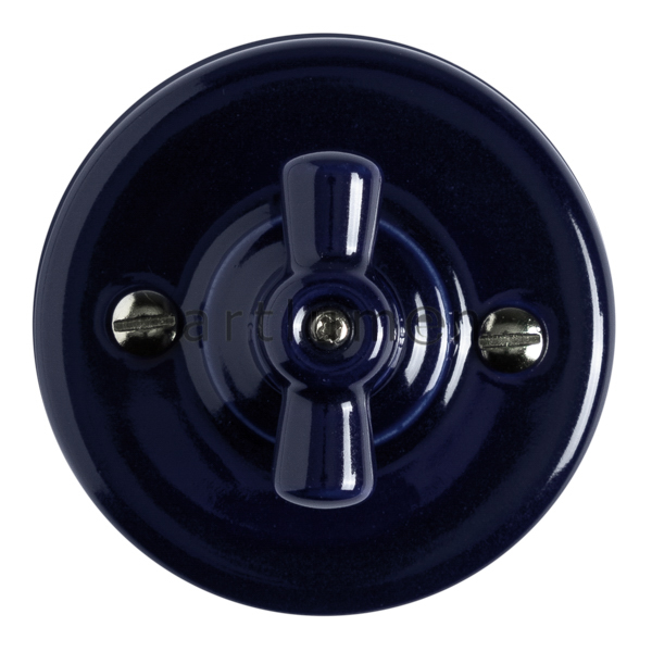 Interruptor con mecanismo rotativo. Fabricado en porcelana de color azul.
