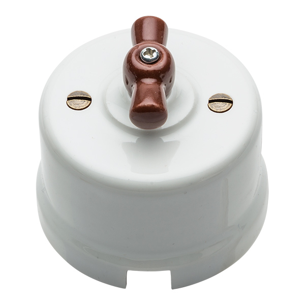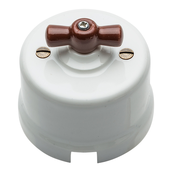 • Interruptor de porcelana blanco lazo marrón