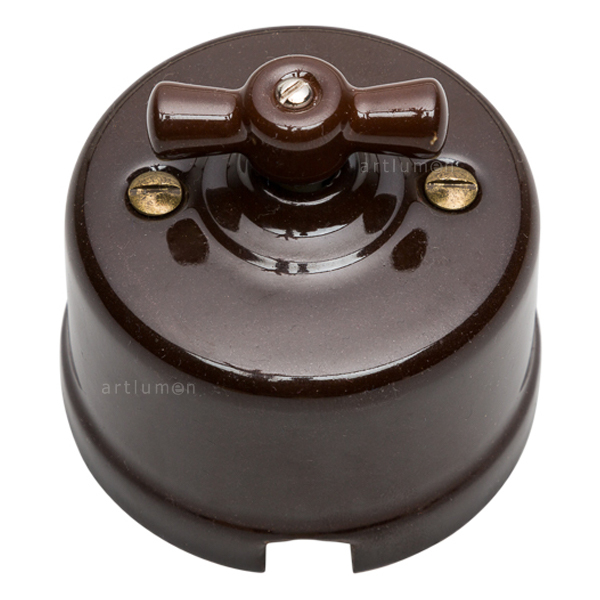 Interruptor de porcelana con mecanismo rotativo. Original diseño, replica del interruptor antiguo de las primeras instalaciones eléctricas. Ideal para entornos rústicos o para dar un toque vintage a tu decoración.