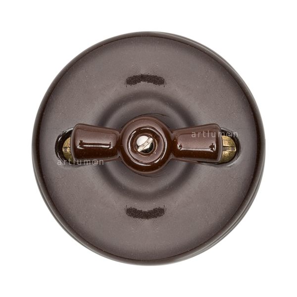 Interruptor de porcelana con mecanismo rotativo. Original diseño, replica del interruptor antiguo de las primeras instalaciones eléctricas. Ideal para entornos rústicos o para dar un toque vintage a tu decoración.