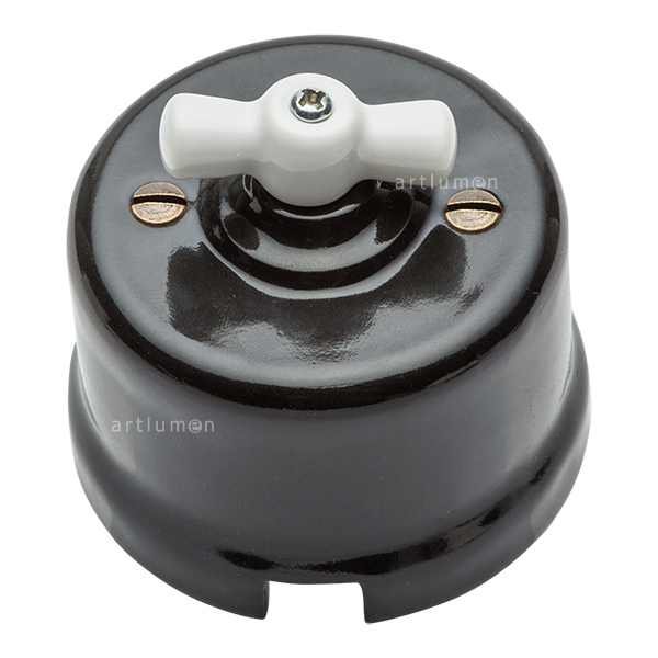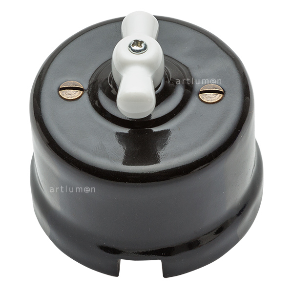 Interruptor de porcelana negro lazo blanco