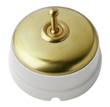 Interruptor de latón brillo montado en cuerpo de porcelana, inspirados en la filosofía del Art Noveau.